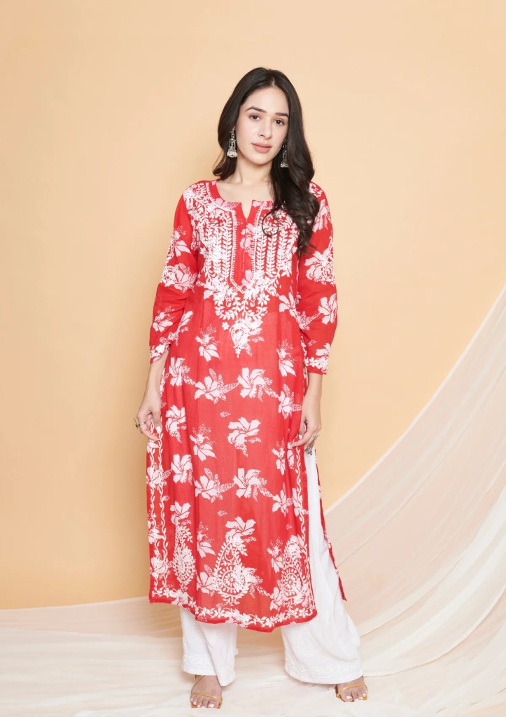 The Lucknowi Chikankari Kurtis and Kurtas come in a wide range of varieties, including red, pink, and yellow ones which are very well known these days among ladies of any age due to their one-of-a-kind plans that can be joined effectively into any outfit without having any difficulty at all; additionally, they come modest as well so there’s no requirement for worry about how much cash would be spent on getting one here!